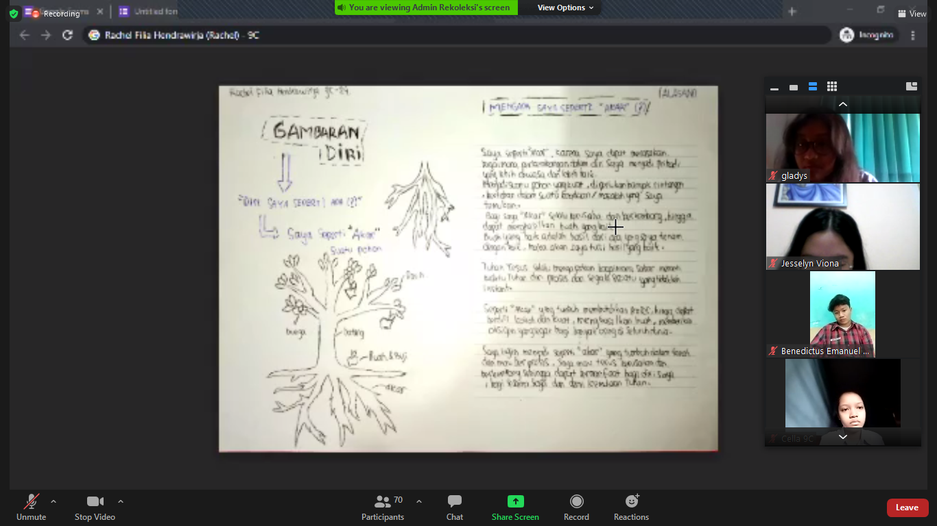 Untuk membantu anak-anak agar semakin mengenal dirinya masing-masing, frater telah membagikan formulir online satu hari sebelum rekoleksi dilaksanakan. Anak-anak diajak untuk membagikan gambaran dirinya melalui formulir itu.