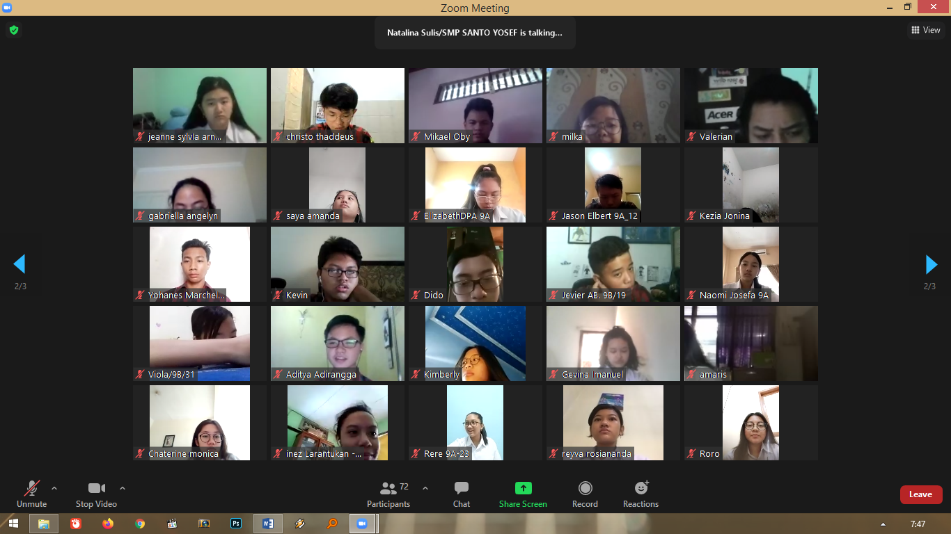 “Hari ini adalah hari yang sangat spesial karena kelas IX adalah penghujung di SMP. Satu tingkat atau satu semester lagi sudah berada di SMA. Kalian bukan anak-anak lagi. Sudah memasuki remaja akhir. Isilah waktu dan nikmatilah sebaik-baiknya. Rekoleksi ini juga untuk membangun keutuhan kalian,” kata Margaretha Ilin Ubayanti (Kepala SMP Santo Yosef Tarakanita Surabaya) dalam pengantarnya.